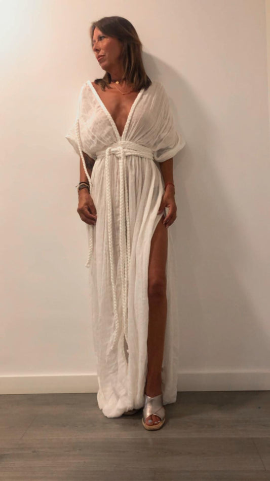 CAFTÁN BLANCO TRENZADO HECHO A MANO 100% ALGODÓN