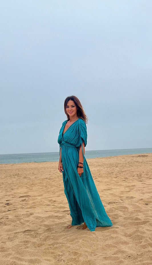 CAFTÁN AZUL TRENZADO HECHO A MANO 100% ALGODÓN