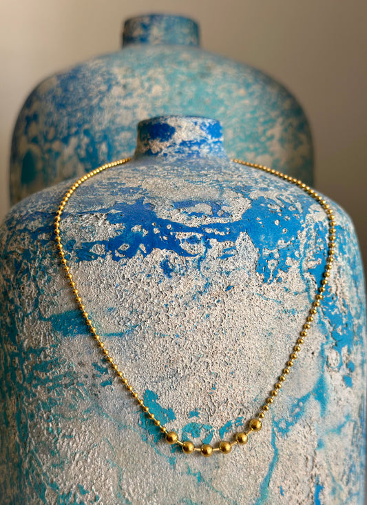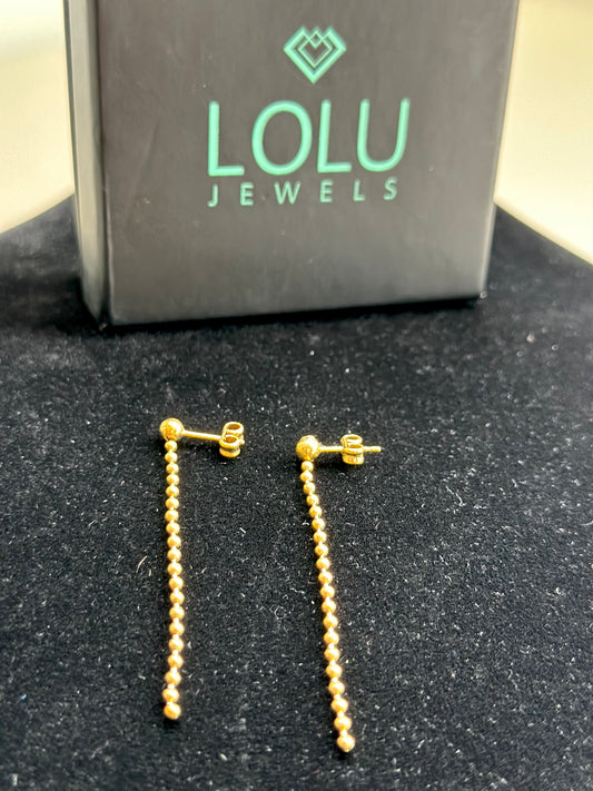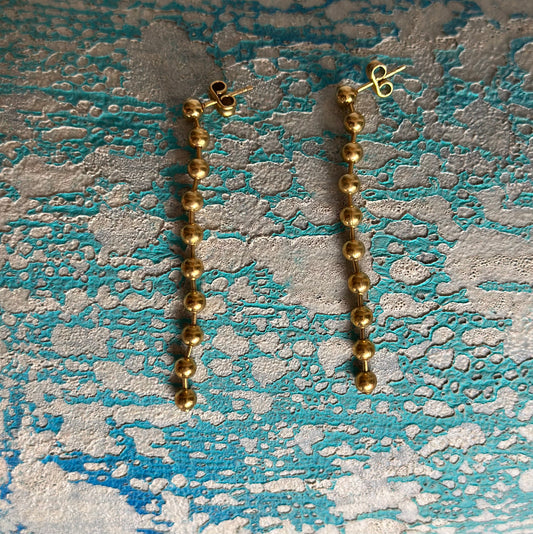 PENDIENTES LARGOS BOLAS DORADO FINO
