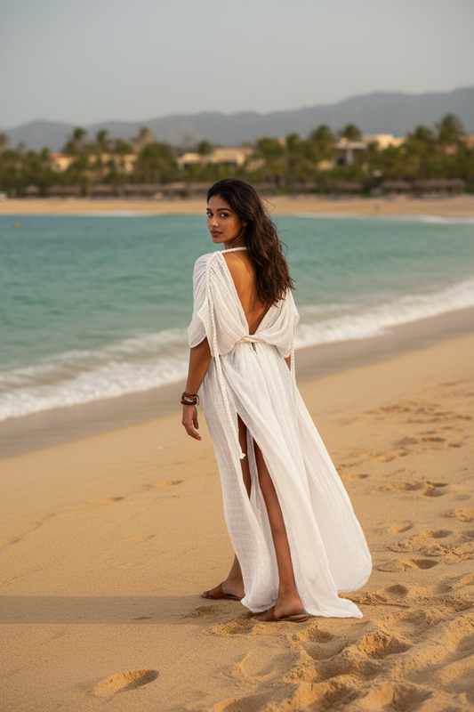 CAFTÁN BLANCO TRENZADO HECHO A MANO