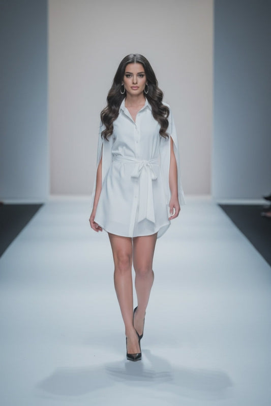 VESTIDO CAMISERO CON MANGAS ABOTONADAS Y CINTURON