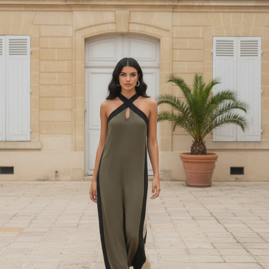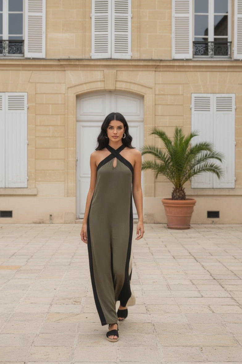 VESTIDO LARGO TRICOLOR ESPALDA AL AIRE